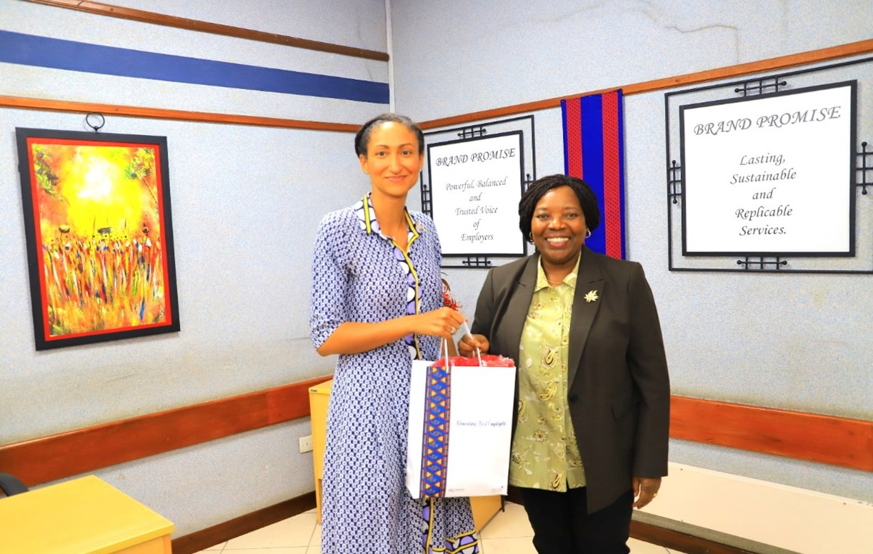 On July 25, 2024, Nancy CHENARD, Executive Secretary-General of UNICONGO (Union Patronale et Interprofessionnelles du Congo) paid a curtesy visit to Ms. Jacqueline Mugo, EBS, who is the Secretary-General for BUSINESSAfrica and President of the International Organization of Employers (IOE), at the Secretariat office in Nairobi, Kenya.