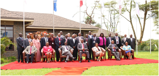 Membres du Conseil d'administration de BUSINESS Africa et FKE dans une photo de groupe avec le directeur général de l'Organisation internationale du Travail, M. Guy Ryder, lors du premier sommet des employeurs africains qui s'est tenu à Naivasha, Kenya